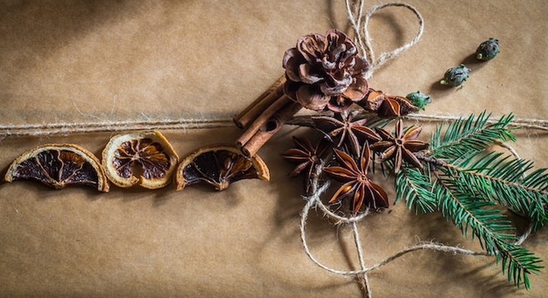 - Sušené pomeranče, hřebíček a skořice: voní a vypadají skvěle na dveřích i na větvích.